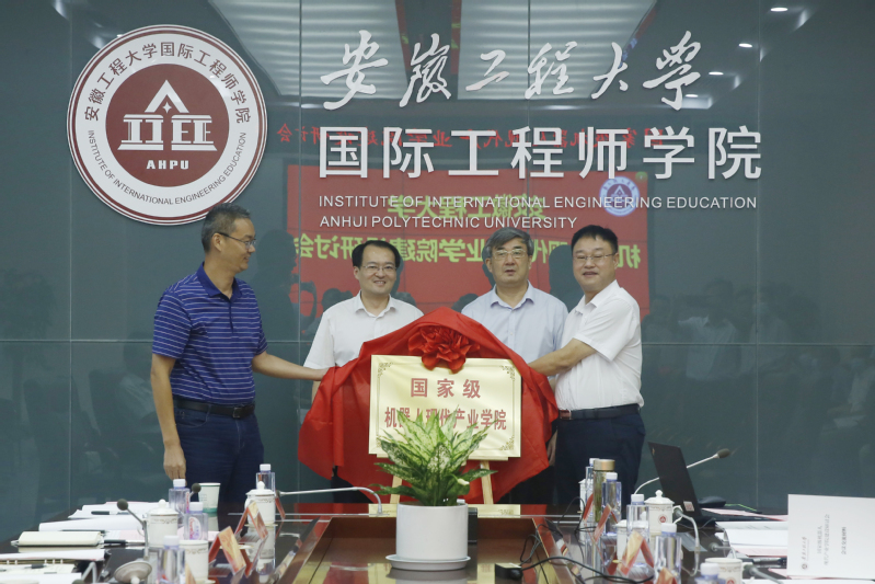 会上,蔡毅、朱永国、王绍武、叶常林为我校国家级机器人现代产业学院揭牌。与会人员对照《现代产业学院建设指南》就《机器人现代产业学院建设方案》展开了充分研讨。