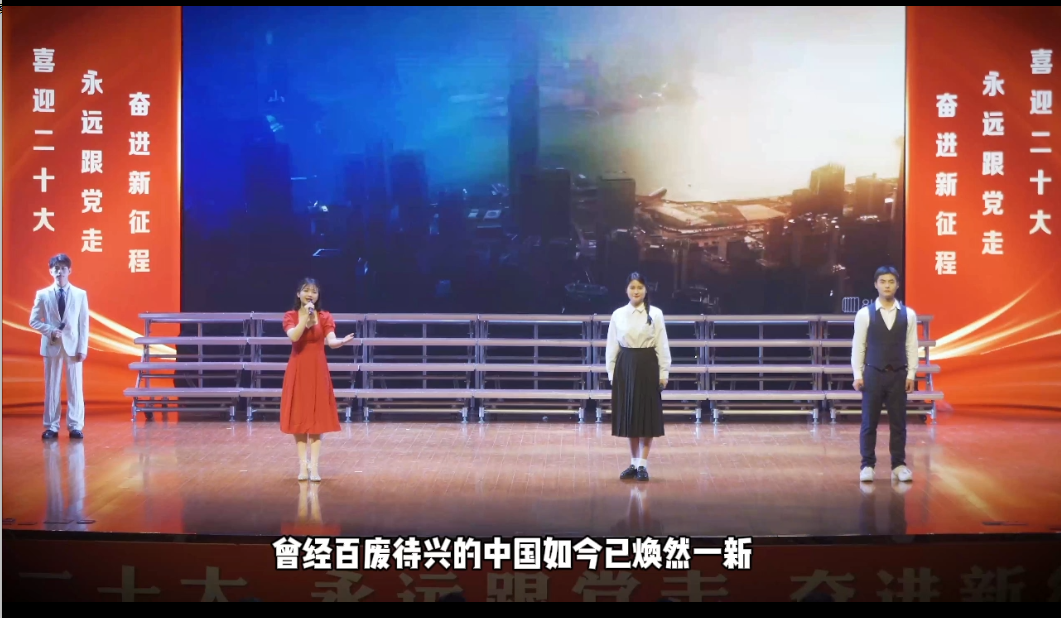 我校选送的作品紧扣“经典筑梦向未来”的主题,通过集体诵读的形式体现中华优秀传统文化、革命文化和社会主义先进文化,歌颂建党百年的光辉历程,展现举世瞩目的伟大成就。