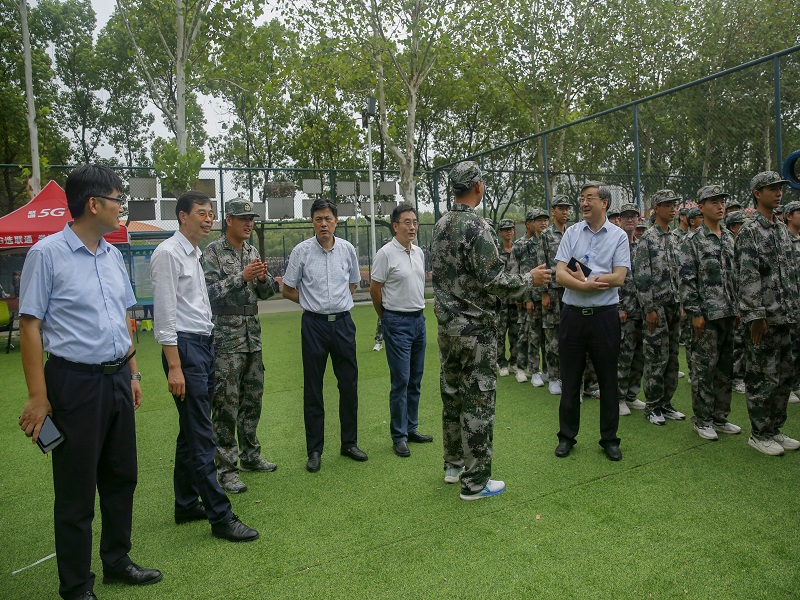 本网讯 9月9日,校党委书记张志宏,校党委副书记、校长王绍武,校党委常委、副校长郑健在办公室、学生处等部门负责人的陪同下,深入新生军训场地指导军训工作,看望参训新生,并亲切慰问了军训现场的教官和新生辅导员。