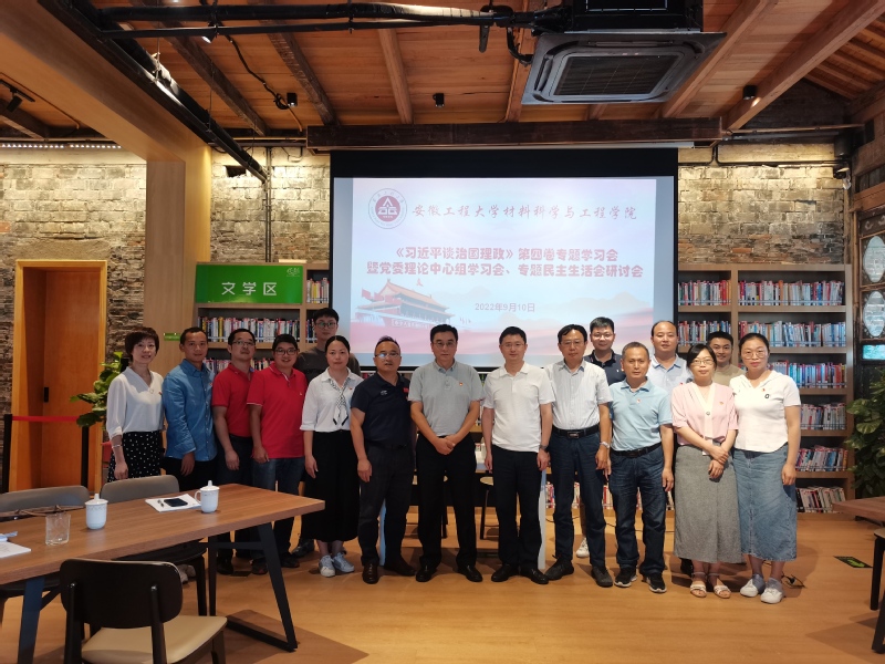 本网讯 9月10日,材料科学与工程学院党委理论中心组在芜湖古城占川书局召开集体学习会,专题学习《习近平谈治国理政》第四卷,围绕专题民主生活会规定学习书目进行交流研讨。校党委常委、副校长郑健出席活动并作总结点评。团芜湖市委书记杨磊应邀列席并作专题辅导报告。学院党委理论中心组全体成员参加学习。