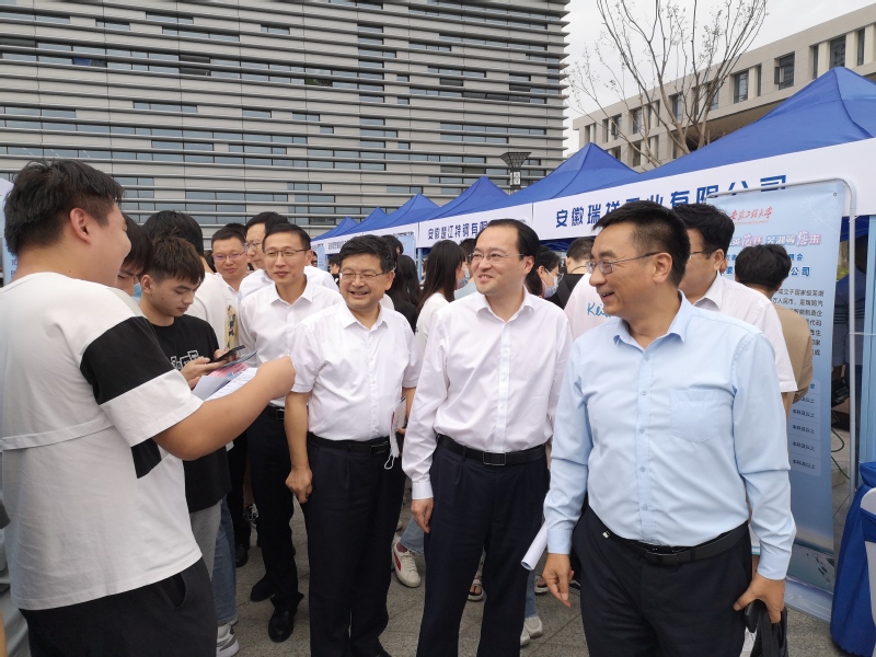 本网讯 9月21日,芜湖市“紫云英花开 芜湖等您来”2022全国百校大宣讲招聘首场活动在我校举办。芜湖市副市长蔡毅,校党委常委、副校长郑健出席活动。