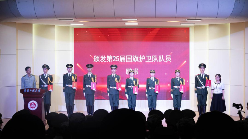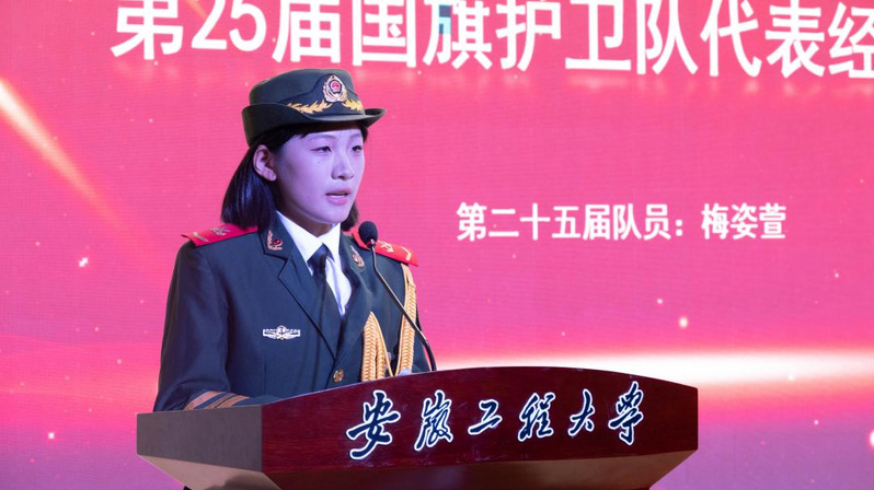 第25届国旗护卫队代表梅姿萱在发言中回忆作为一名护旗手的心路历程,字字句句铿锵有力、深入心坎。第26届国旗护卫队代表王飞表达了自豪之情,承诺会坚持刻苦训练,让鲜红的五星红旗迎风飘扬。芜湖市“小小升旗手”代表、来自皖江小学的苏永澄说,会以大哥哥、大姐姐作为榜样,好好学习,长大报效祖国。