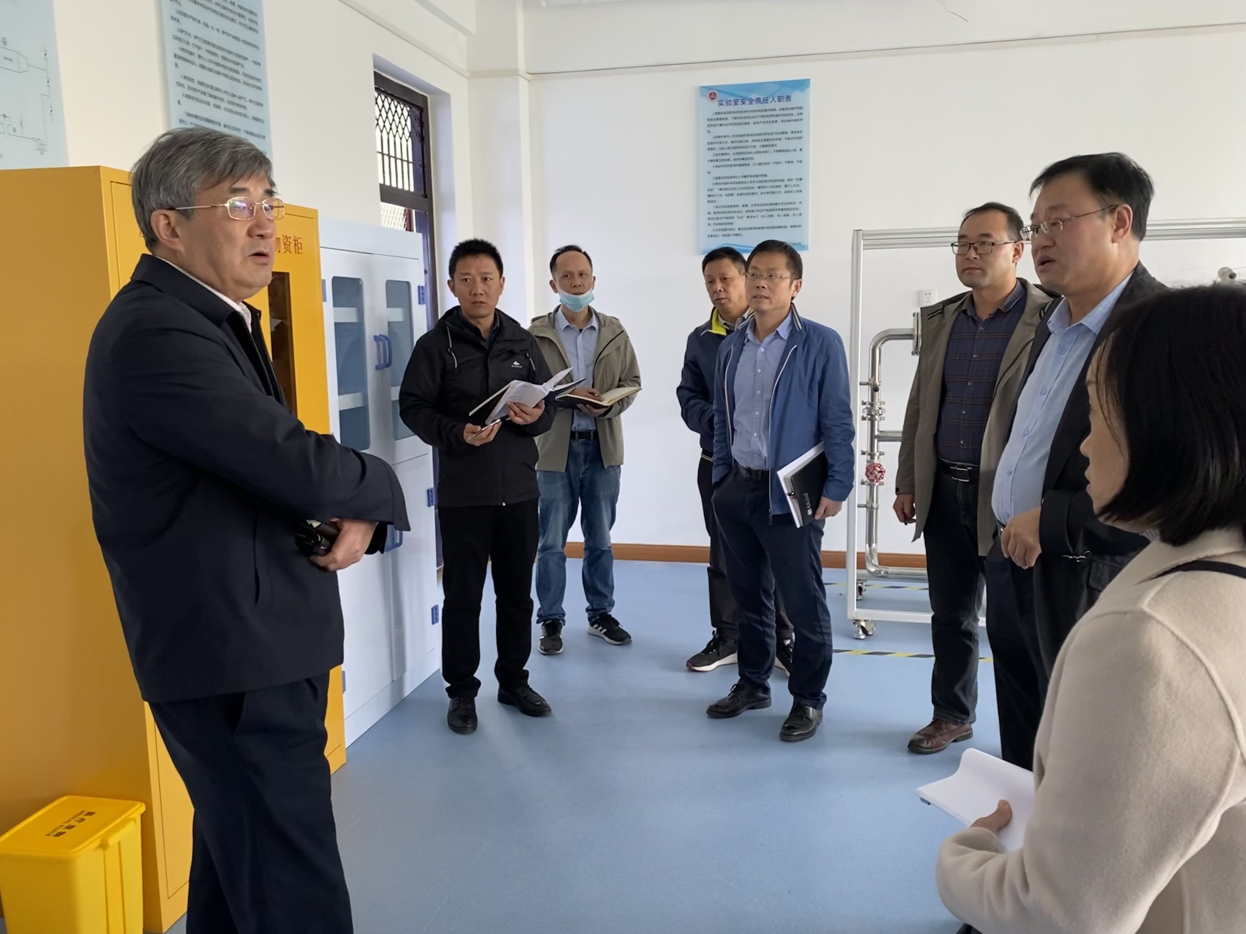 叶常林就实验室水、电、气、危化品存放等情况以及走访路线优化及环境整洁等问题进行了指导。