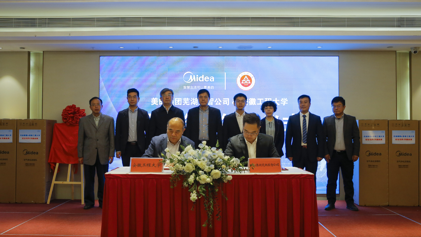 活动现场,我校和美的集团芜湖美智公司签署战略合作协议,并共同为“美的集团芜湖美智校招指定院校”揭牌。芜湖美智公司聘任我校3位博士为技术研发顾问,我校聘任芜湖美智公司3位高管担任学校的产业教授,双方互颁聘书。