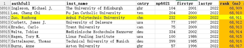原榜单链接:Ioannidis, John P.A. (2022), “September 2022 data-update for Updated science-wide author databases of standardized citation indicators”, Mendeley Data, V4, doi: 10.17632/btchxktzyw.4 (https://elsevier.digitalcommonsdata.com/datasets/btchxktzyw/4)