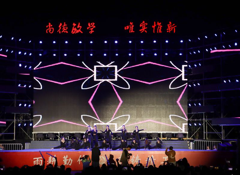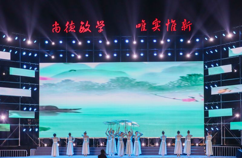 以歌舞之名,彰青春风采。舞蹈《雨涧春行图》描绘了一幅青山碧水、烟雨朦胧、纸伞伊人的春景图;《Keep dancing》是力量与柔美的绝佳配合,是青春和汗水的尽情舞动,肆意地绽放在舞台;《以舞之名》动感十足,劲歌热舞,尽显青春活力和蓬勃朝气;时装走秀《bloom by yourself》在舞台上气场全开,大放光彩;舞蹈《飞天》以街舞结合敦煌飞天风格的表现形式,将古典的敦煌舞与街舞相融合,生动形象地展现了敦煌壁画的辉煌景象;歌舞串烧《青葱岁月》中,朗朗读书声,声声入耳,曲曲流行乐,悦悦动听;街舞《燎原》的表演者们身着白衣红裤,即使在微凉的秋夜也能够点燃起一片火热;舞蹈《那一束光》用不断变换的场景让在场观众跟随着背景音乐感受那段红色岁月——在中华民族生死存亡之际,中国共产党人开天辟地,犹如一束光,照亮中国大地。