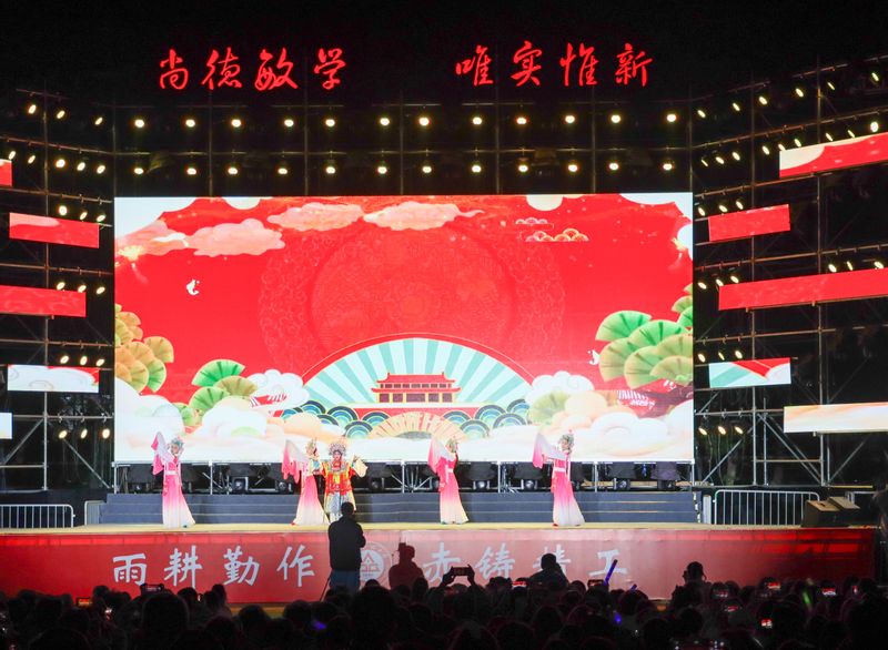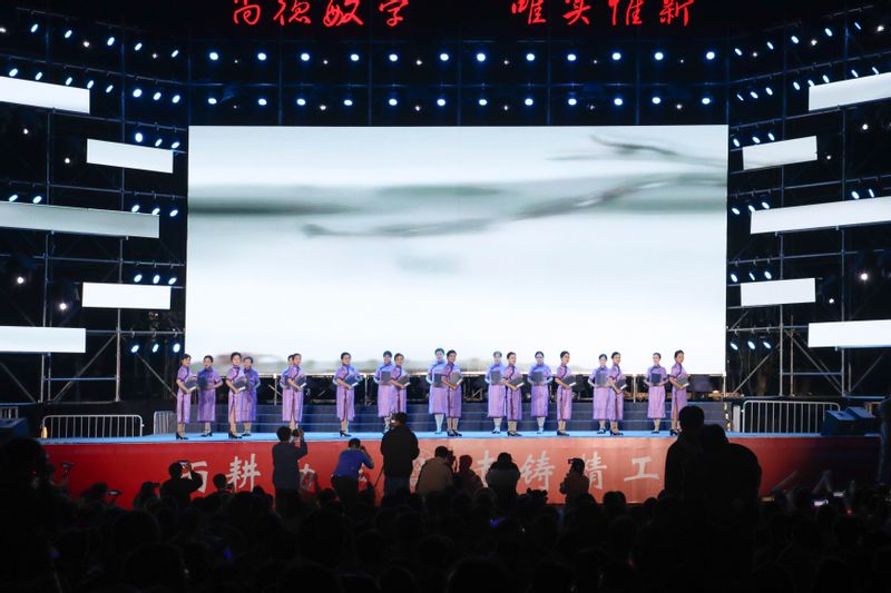 本网讯 11月5日晚,一场以“盛世耀中华 追梦新征程”为主题的2022年迎新文艺晚会在第二田径运动场举行。校党委副书记苏国红出席活动,各学院、相关部门负责人,与2022级全体新生共同观看了演出。