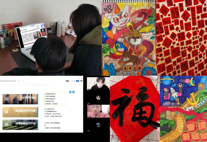 我校青年志愿者与国家乡村振兴重点帮扶县之一的贵州省黔南布依族苗族自治州三都水族自治县第三小学达成对接,在寒假期间通过线上对接的方式开展义务支教活动。120名青年志愿者面向106名结对儿童,围绕“一起快乐阅读”“一起健康运动”“一起云课堂”等板块和小朋友们亲切互动,介绍家乡特色、讲解历史故事、共读一本书,开展思政、环保、美育、健康等不同主题的“云课堂”活动,完成了一系列“奋进新征程”美术绘画作品,累计开展支教志愿服务时长约900小时。