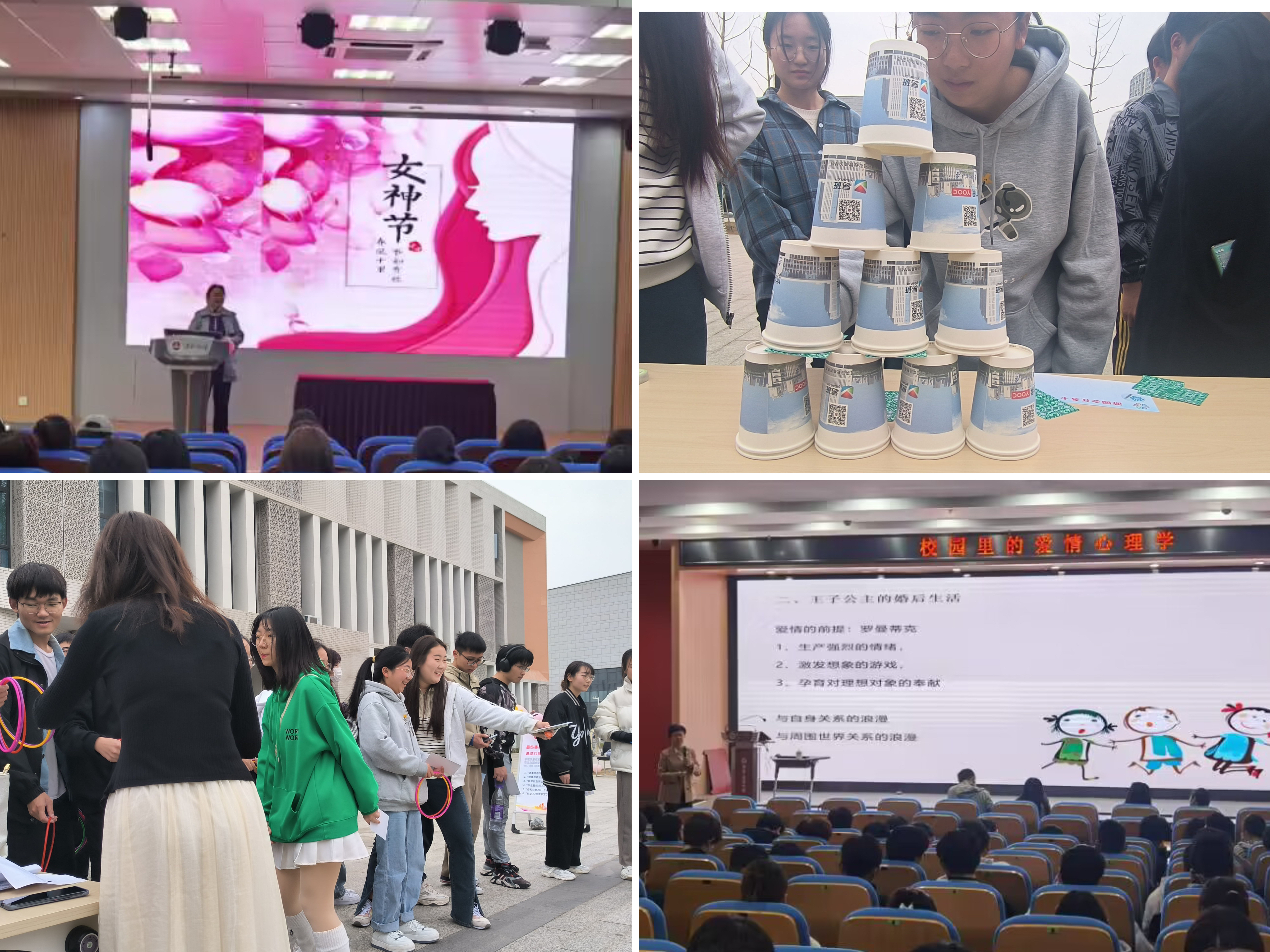 此次女生心理健康周活动共由“校园里的爱情心理讲座”“自我完善团体辅导””女大学生心理健康与调适讲座”“心理游园会”“心理委员培训班结业” “宿舍关爱分享活动”六个系列活动组成。活动启动以来,学校高度重视,各学院大力支持,学生团体积极参与,活动取得良好成效。认知赋能,激发心灵动力。“知为行之始,行为知之成”,心理中心邀请四院专家在两校区分别开展校园爱情和心理健康调适讲座,用知识武装学生头脑,指导我校女大学生树立科学的心理健康观念,培养乐观积极的情绪调适能力与挫折应对能力;解惑润心,构建积极自我。通过自我完善团体辅导,引导女大学生体验和运用心理健康知识,觉察并与自己的心灵连接,理解并调控自己的情绪,提升自我价值感,在学习生活中守护自己的心田;朋辈互助,担当心灵使者。通过举办新生心理委员培训结业典礼,强化心理委员朋辈互助队伍建设,不断提升心理委员专业知识和技能,在同学间建起沟通的桥梁;悦享生活,释放情绪压力。心理游园会以八项心理体验项目吸引国际工程师学院三百余名学生参加,让学生在运动中拉近彼此之间“心”的距离,汇聚“愉悦喜乐”的心流,放松身心,释放压力;相互关爱,共筑心灵港湾。宿舍关爱活动中各成员传递温暖,守望相助,用文字记录下感动瞬间,强化了对宿舍的归属感,增进了彼此的亲密感,通过宿舍朋辈互助与心理育人体系有机融合,助力学生“和起来”。