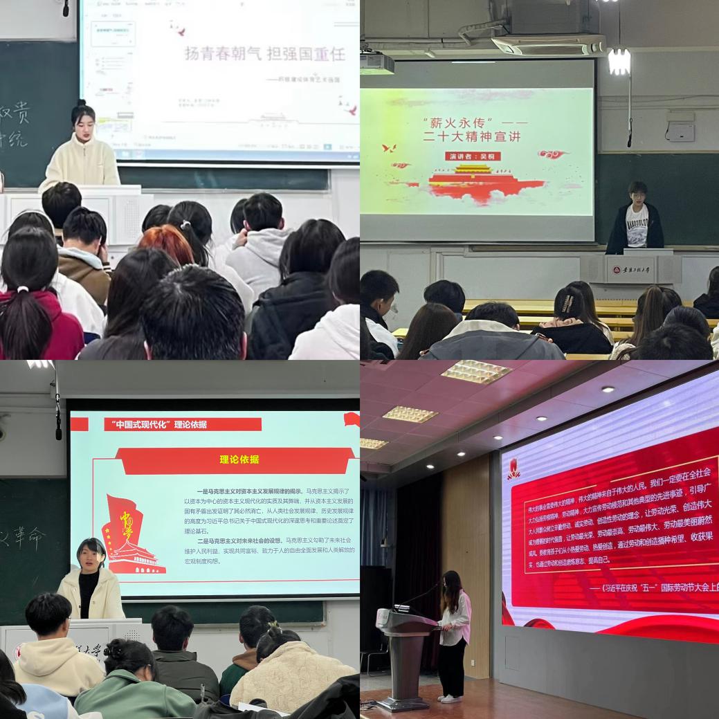 本网讯 草长莺飞,春光明媚,玉兰飘香的校园里又掀起了久违的宣讲热潮。三月伊始,党的二十大精神学生宣讲团在校团委的统筹安排和马克思主义学院教师的专业指导下,按照全覆盖、广领域、多渠道的要求有序开展宣讲工作。截至目前共开展宣讲70余场,覆盖学生3000余人。