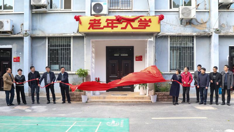 会后,老年教育工作委员会的相关领导为老年大学授课场地揭牌。