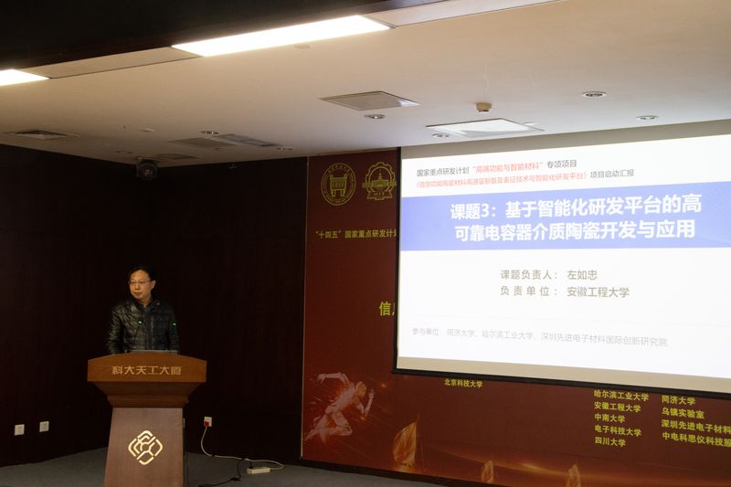五个课题负责人逐一进行汇报,左如忠向与会专家汇报了我校牵头承担的课题三“基于智能化研发平台的高可靠电容器介质陶瓷开发与应用”的具体实施方案、关键科学问题、预期标志性成果及考核指标、进度安排、课题及经费管理等内容,为课题组织实施奠定基础。
