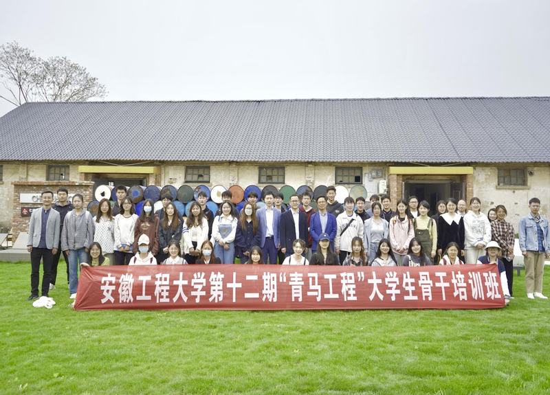 本网讯 为深入学习宣传贯彻党的二十大精神,着力丰富“青马工程”培养内涵,4月15日,学校第十二期“青马工程”骨干培训班在湾沚区陶辛镇七房艺术村“艺术粮仓”开班。湾沚区委书记殷琼,校团委相关负责人、各学院团委负责人、本期青马班全体学员参加仪式。