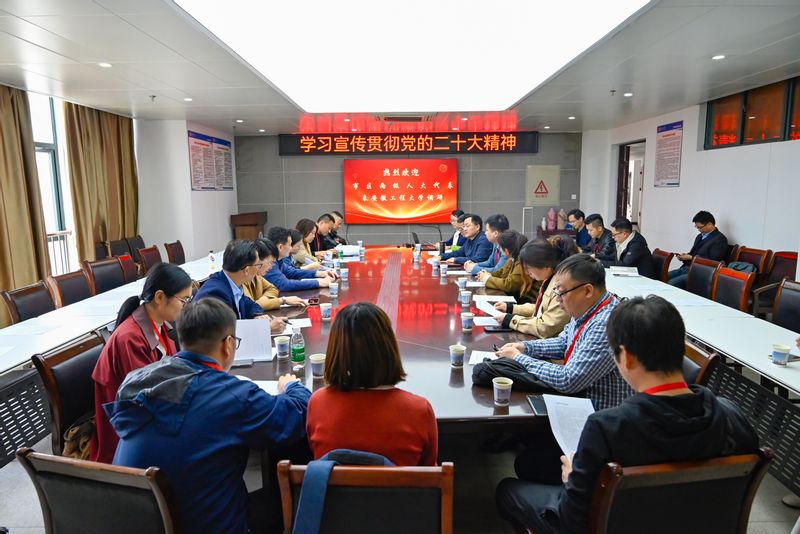 调研组一行通过实地考察、听取汇报、讨论座谈了解学校创新创业教育发展状况。在创新创业教育中心,代表们饶有兴致地参观了智能车、物联网、计算机、机器人、大数据与人工智能创新开放活动室等,了解了创新创业教育中心的定位、功能、硬件软件配备及开展的创新创业活动情况,充分肯定第二课堂促进创新创业能力培养的相关举措,“以赛促学、课赛融合”的特色给人大代表们留下了深刻的印象。在材料科学与工程学院增材制造研究院,代表们了解了国内外先进3D打印设备的区别与特点,并就不同材质作品的应用场景进行了交流,学生创新开发的金属、树脂、尼龙等多种3D打印作品让代表们耳目一新。在产业学院采洗标实验室、工业互联网实验室、大数据中心,人大代表们就学校产业学院实验室建设、实践课程设置、拔尖创新人才培养等方面进行了深入了解,人大代表们边听边记,边走边看,与学生和老师进行了亲切交流。产教融合的育人模式、自信阳光的师生精神面貌,得到了代表们的一致认可。