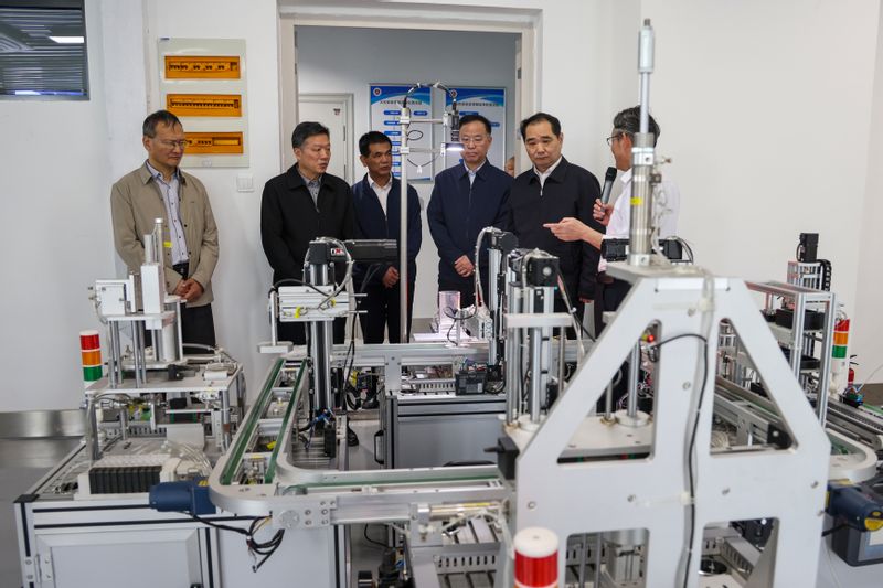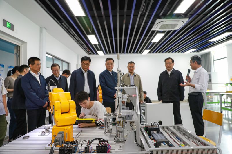 郑宏一行先后来到国际工程师学院图文信息中心、国家级机器人现代产业学院,实地走访考察了数字孪生实验室、云制造实验室和机器人协同作业实验室等地,重点听取了学校党建和发展情况的汇报,全面详细了解了国家级机器人现代产业学院、学校重点实验室的建设情况、发展规划、人才培养、科研布局、成果转化、服务区域经济和战略性新兴产业能力等情况。