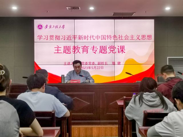郑健以《认真学习贯彻习近平新时代中国特色社会主义思想做担当民族复兴大任的新时代新青年》为题,坚持“四个讲清楚”,围绕习近平总书记对新时代青年提出的“有理想、敢担当、能吃苦、肯奋斗”的要求和学校“三全六专”育人实践讲授专题党课。