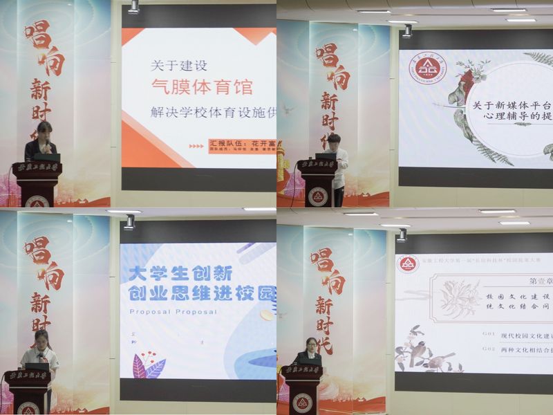 本网讯 5月24日,学校第一届校园提案大赛决赛在学术报告厅成功举办。校党委常委、副校长郑健亲临决赛现场,芜湖长信科技股份有限公司副总裁何晏兵、宣传部、保卫处、后勤保障处社会合作处相关负责人出席活动并担任评委。经过激烈的角逐,《关于教学楼设施便民化维修改造提案》获得一等奖;《关于新媒体平台朋辈辅导的提案》和《关于非遗文化在校园的传承与发展的提案》获得二等奖;《有关校园电动车管理规划问题的提案》《关于实施中华传统文化与校园文化相结合,推进校园环境建设的提案》《关于凝聚团学组织力量的提案》获得三等奖。