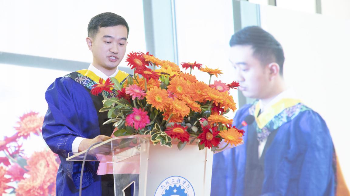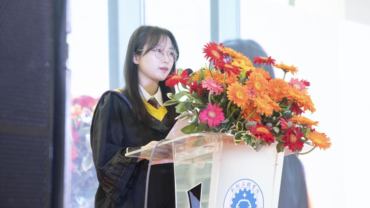 研20班齐恒和车辆191班余芳琪两位同学分别作为研究生、本科生代表发言。他们表达了对于母校培养的感恩之情,分享了在校期间的成长经历与收获,表示会牢记“尚德敏学 唯实惟新”的校训精神,脚踏实地、默默耕耘,不负韶华、不负期待、不负时代。