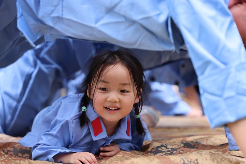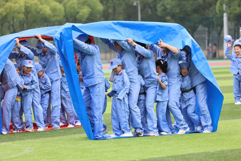 亲子游戏将活动推向高潮。孩子和家长们通过参与“传递红军旗”“巧夺金沙江”“飞夺泸定桥”“爬雪山”“过草地”等游戏体验红军在烽火连天岁月中不畏艰辛、不怕困难、团结合作的革命精神。瞧,尽管汗水打湿了衣衫,也没有一个孩子叫苦叫累。小“红军”们依然牵着大“红军”的手,齐心协力、勇毅前行,共同完成一个又一个游戏项目。