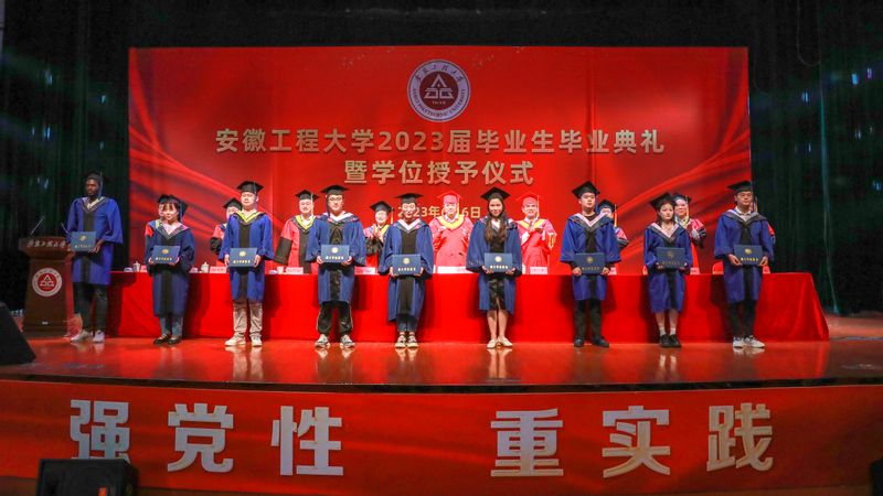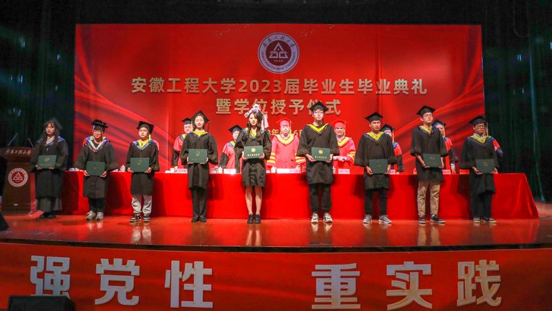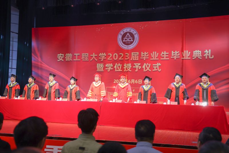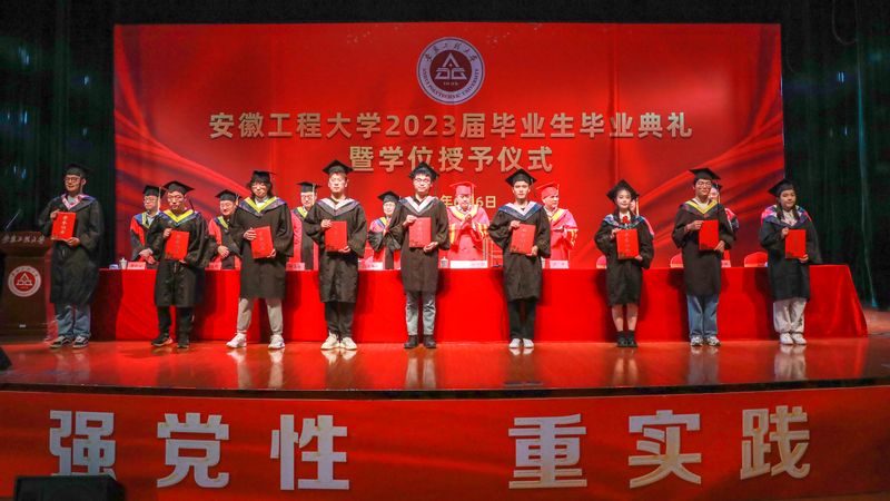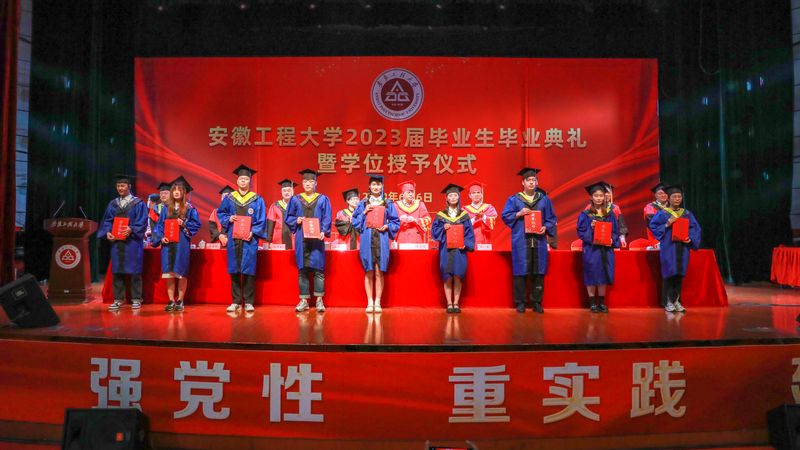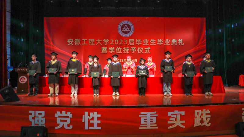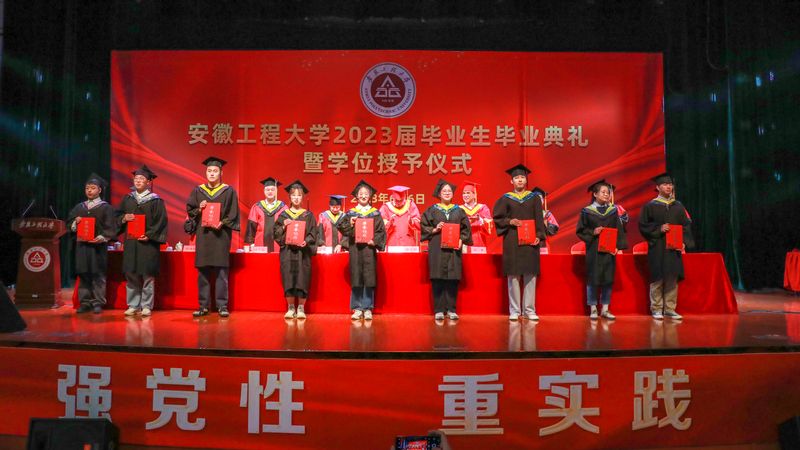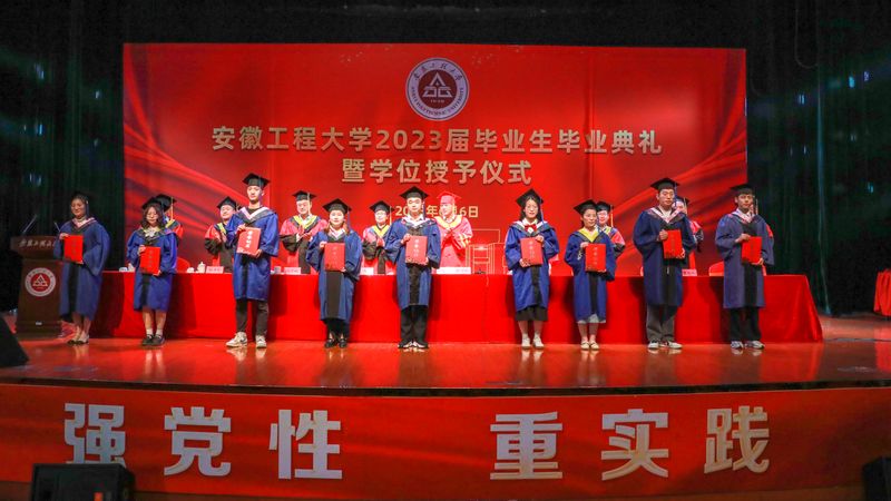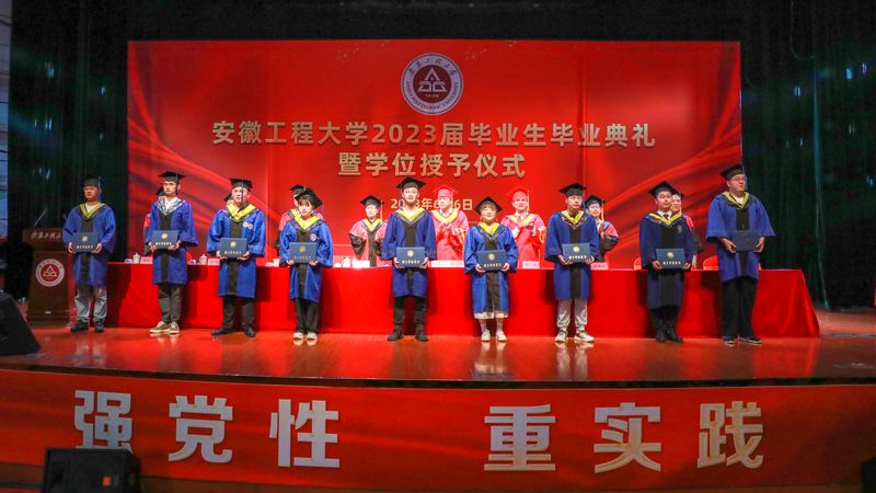 程双四宣读学校授予2023届毕业生学士、硕士学位的决定;苏国红宣读2023年省级优秀毕业生名单。校领导依次为本科毕业生代表、硕士毕业生代表颁发毕业证书、学位证书、拨正流苏,并为2023年省级优秀毕业生代表颁发荣誉证书。
