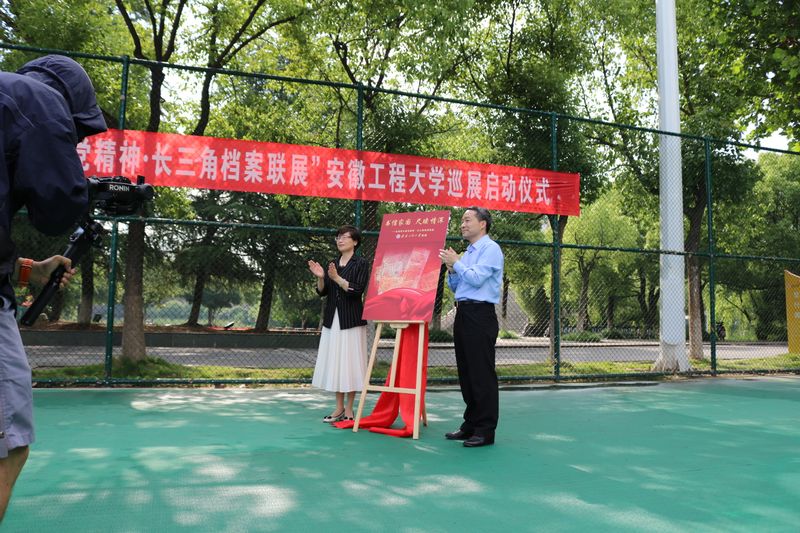 本网讯 为深入开展学习贯彻习近平新时代中国特色社会主义思想主题教育,弘扬伟大建党精神,激发强大奋进力量,校团委、图书馆、经济与管理学院、马克思主义学院联合芜湖市档案馆共同举办“书信家国 尺牍情深 弘扬伟大建党精神 长三角档案联展”活动。6月8日,芜湖巡展首站启动仪式在我校第一田径场举行。校党委副书记苏国红,芜湖市委宣传部副部长、市委史志室主任魏超,市档案馆馆长何学东,市委史志室副主任龙遗华出席启动仪式。经济与管理学院、马克思主义学院党政领导班子及学生代表,芜湖市委史志室、芜湖市档案馆相关部门代表等参加了启动仪式。仪式由校团委副书记李恒奎主持。