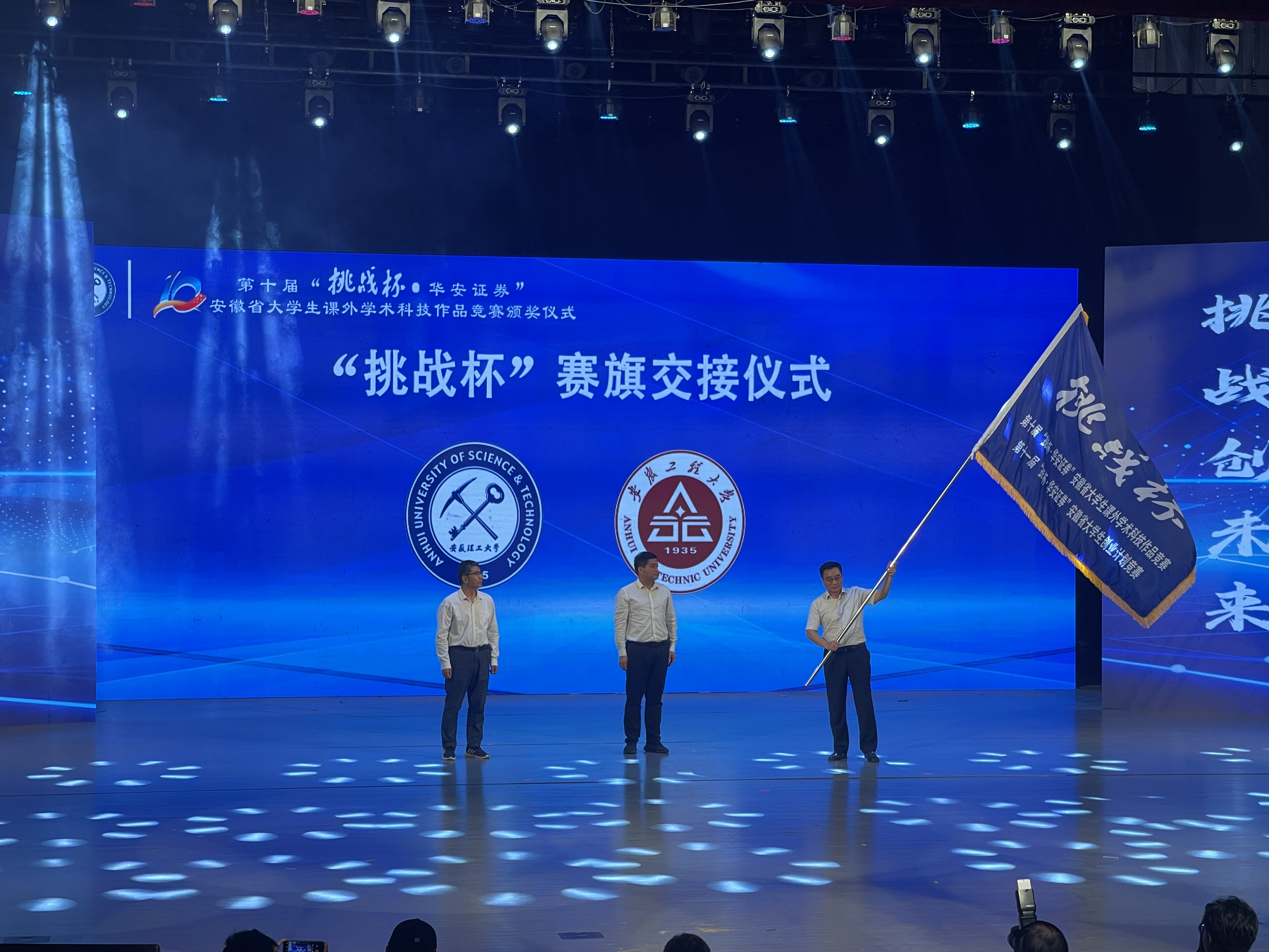 接过赛旗,即代表吹响了下一届赛事的号角。我校将全力做好2024年“挑战杯”安徽省大学生创业计划竞赛工作,不断强化学科竞赛的育人功能。
