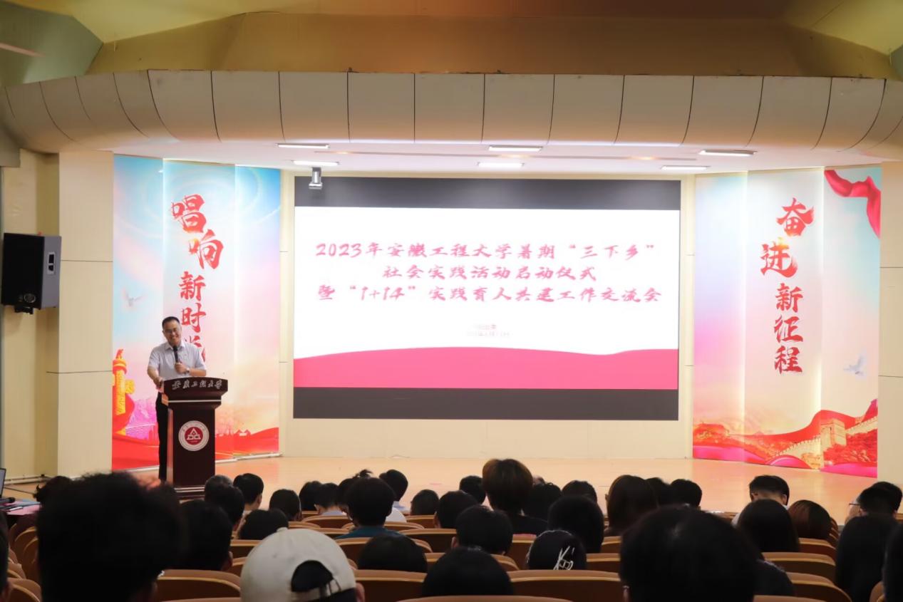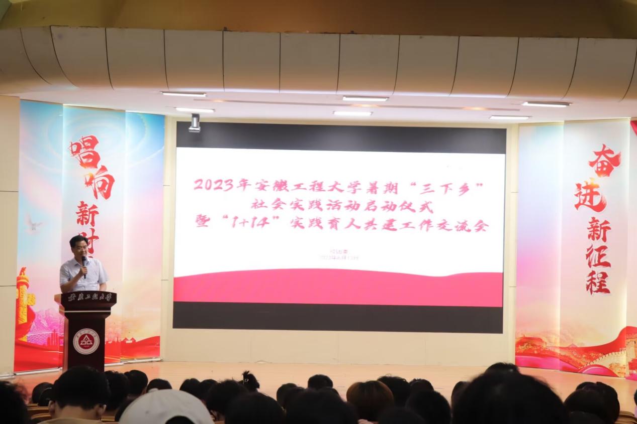 本网讯 为深入开展学习贯彻习近平新时代中国特色社会主义思想主题教育,推动“1+14”实践育人共建工作推深走实,6月13日,我校2023年暑期“三下乡”社会实践活动启动仪式暨“1+14”实践育人共建工作交流会在学术报告厅举行。校党委副书记苏国红,校党委常委、副校长郑健,团市委副书记贾冕茜出席活动。“1+14”共建单位负责人,相关乡镇团委负责人,各学院党委副书记、团委书记(副书记)、实践队伍代表参加活动。