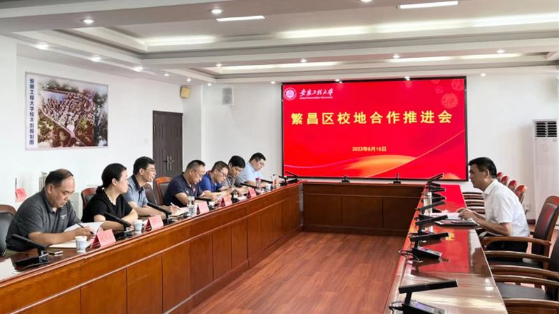 本网讯 8月15日,学校召开繁昌区校地合作推进会,研讨和部署与繁昌区校地合作年度工作。校党委副书记、校长卢平主持会议并讲话。办公室、人事处、社会合作处、材料科学与工程学院、纺织服装学院、生物与食品工程学院等相关部门负责人参加会议。