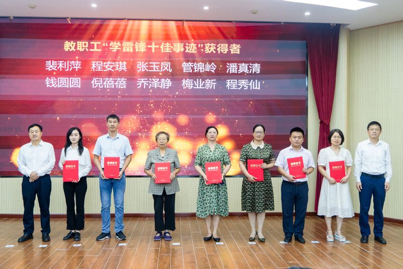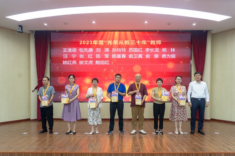 仪式上,播放了主题视频《无名的人》,致敬见证学校发展、奉献教育事业的每一位徽程人。苏国红宣读表彰决定,希望全校教师以受表彰教师为榜样,勤奋工作、积极进取,为学校发展作出更大贡献。与会校领导为光荣从教三十年教师,全国教科文卫体系统模范职工小家、省“工人先锋号”荣誉称号获得单位、“三全六专”育人最美教师代表,2022年度先进集体、先进个人代表,教职工“学雷锋十佳事迹”获得者颁奖。