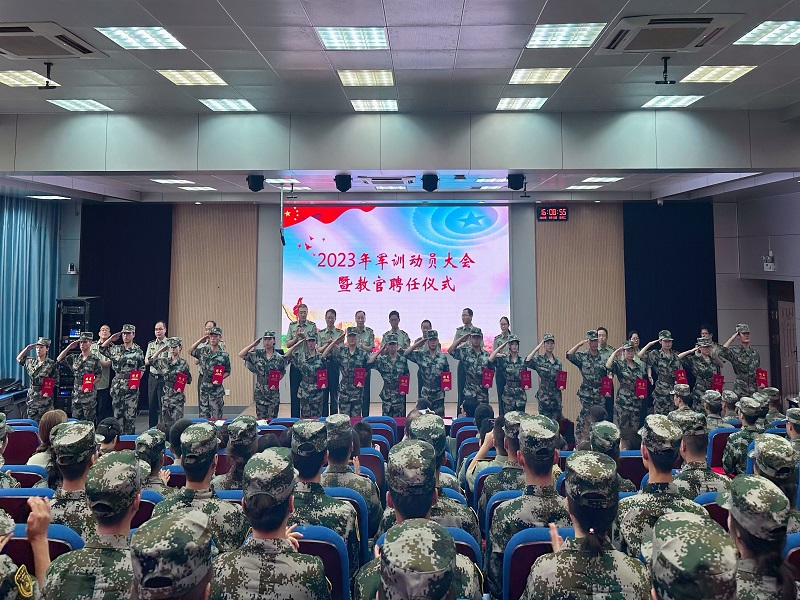 本网讯 9月12日,2023级新生军训动员大会暨教官聘任仪式在5教117举行。芜湖市鸠江区人武部,校学工部、武装部、校团委相关负责人,各学院党委副书记,全体新生辅导员,全体教官参加。
