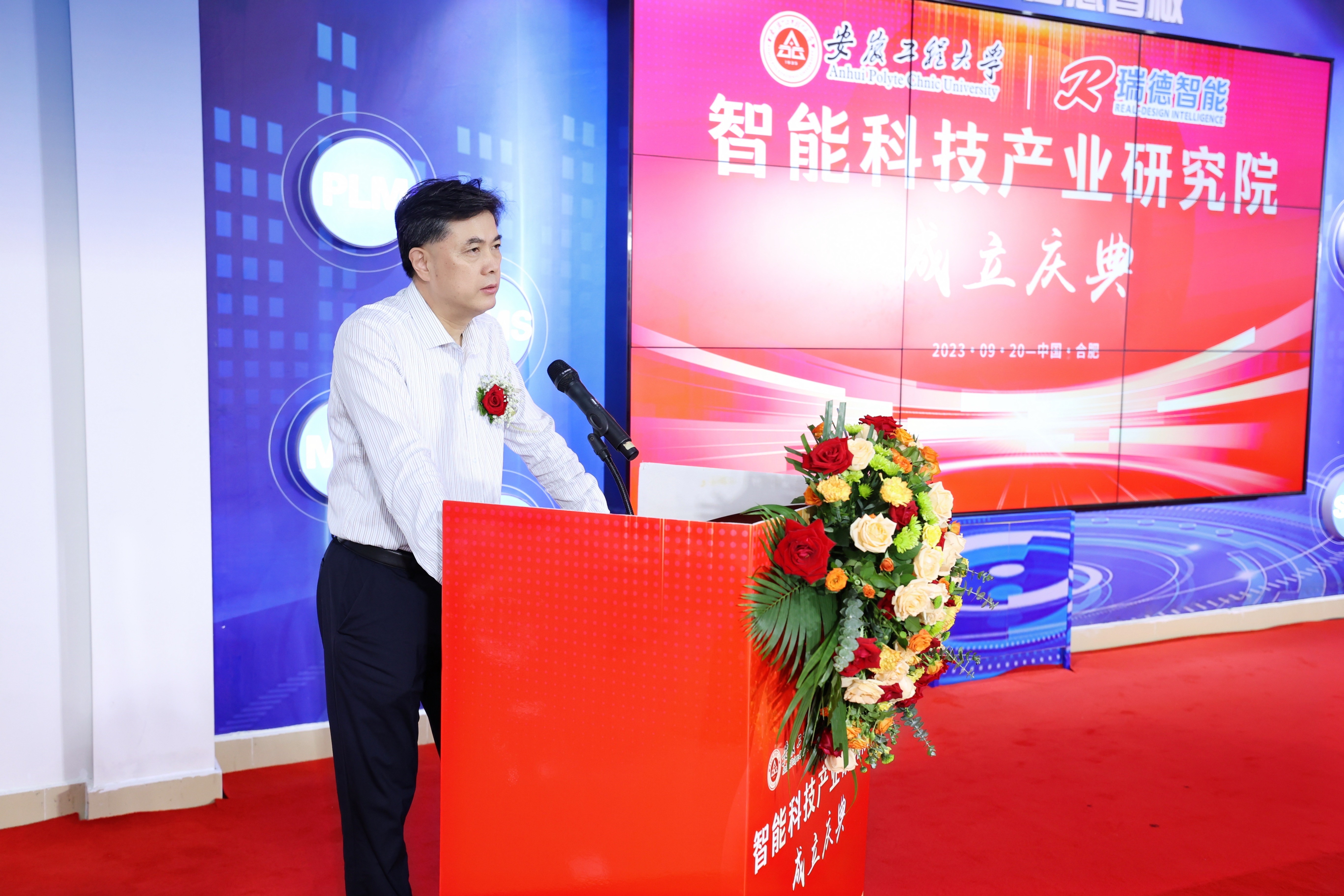 本网讯 9月20日,学校与广东瑞德智能科技股份有限公司共建的“智能科技产业研究院”签约仪式在合肥举行。瑞德智能董事长汪军,校党委书记张志宏,校党委常委、副校长凤权出席活动。校组织部、办公室、科技处、电气工程学院、集成电路学院相关负责人,学校在安徽瑞德任职的校友等共同参加了活动。
