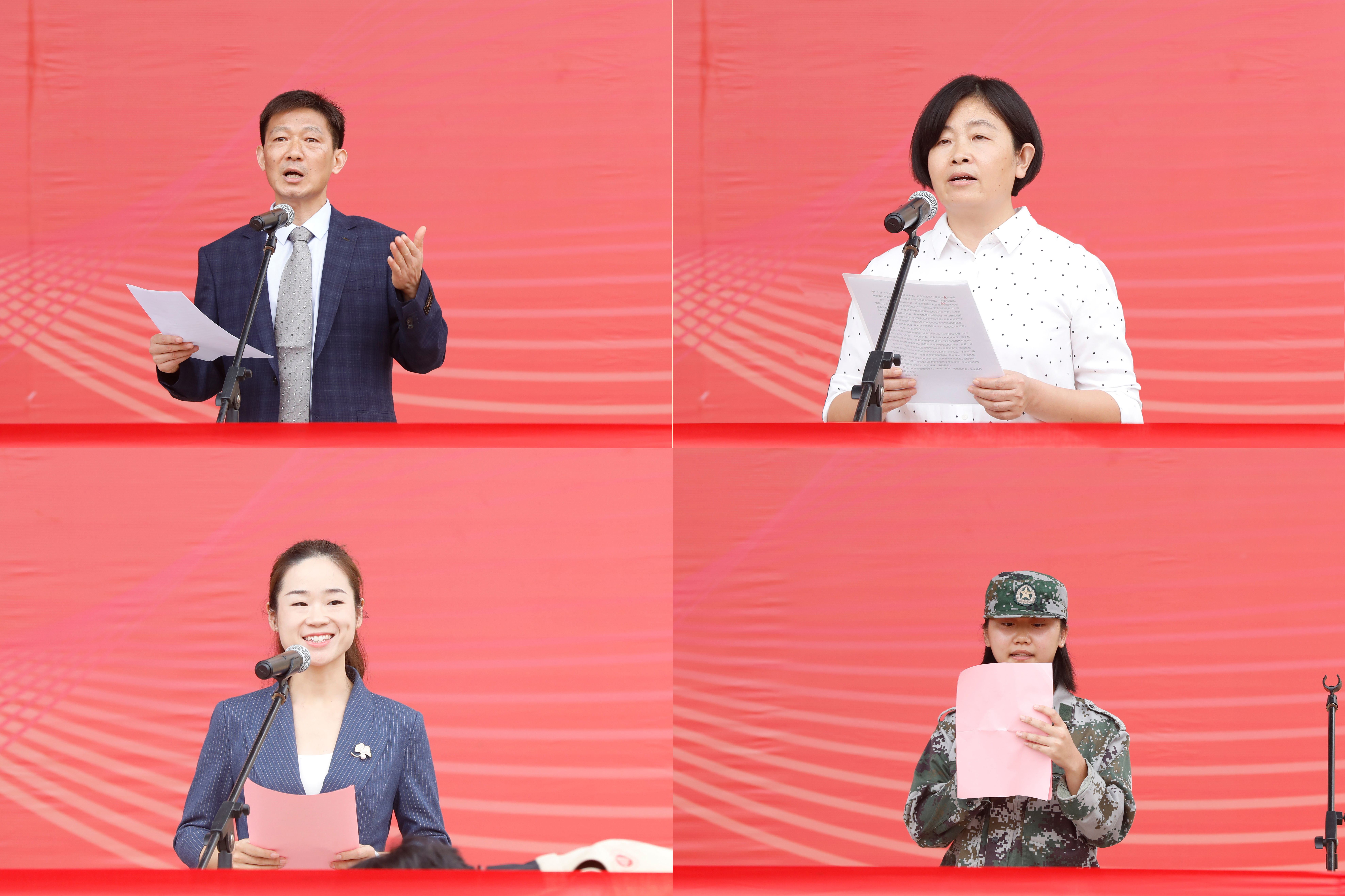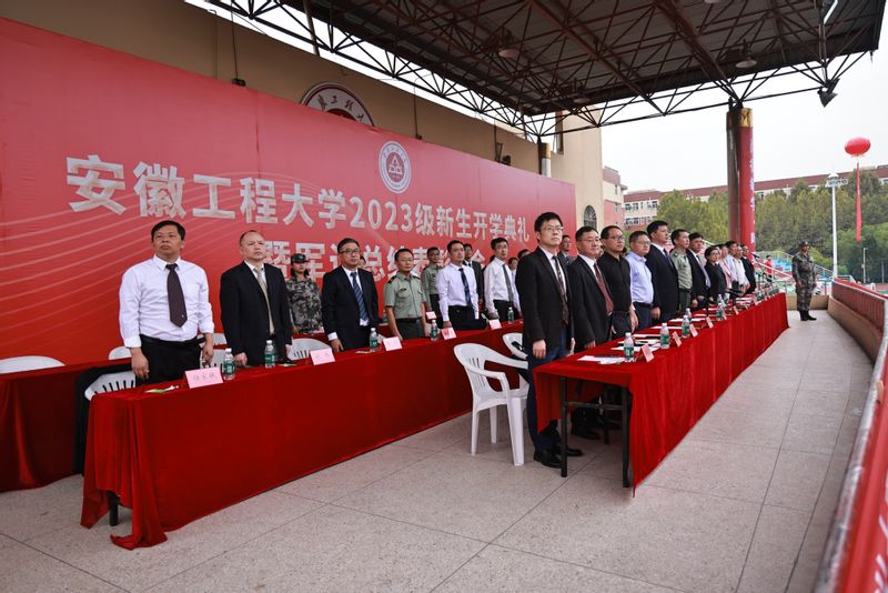 本网讯 9月27日,我校2023级新生开学典礼暨军训总结表彰大会在第一田径场举行。在校的校领导张志宏、苏国红、程双四、凤权、周虹屏出席。鸠江区委常委、人武部政委程诚,我校生物工程专业2001届校友、山东大学教授、博导熊胜林,太和一中副校长王勇,桐城市天城中学副校长周继明应邀参加。大会由校党委副书记苏国红主持。