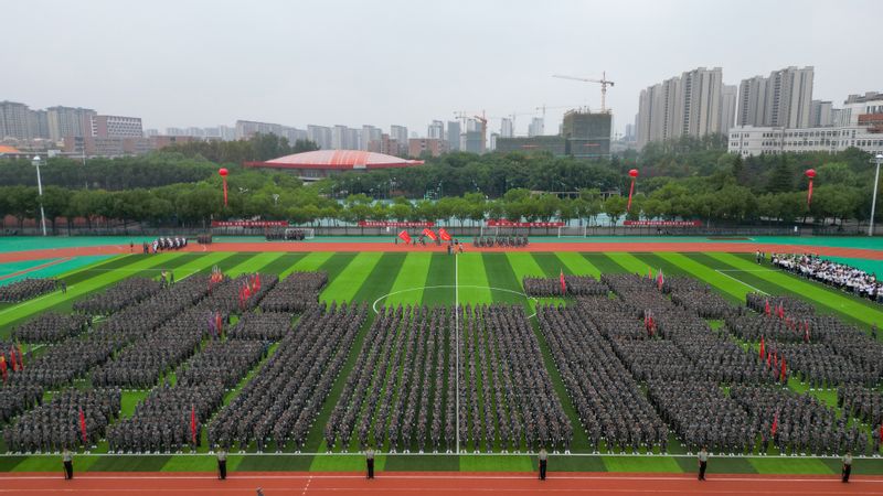 出席本次活动的还有二级党组织书记、相关部门主要负责同志,军训工作领导小组全体成员,各学院专职副书记,优质生源基地领导老师代表、校友代表,新生辅导员,教师代表、老生代表以及2023级4500名本科生和800余名研究生。