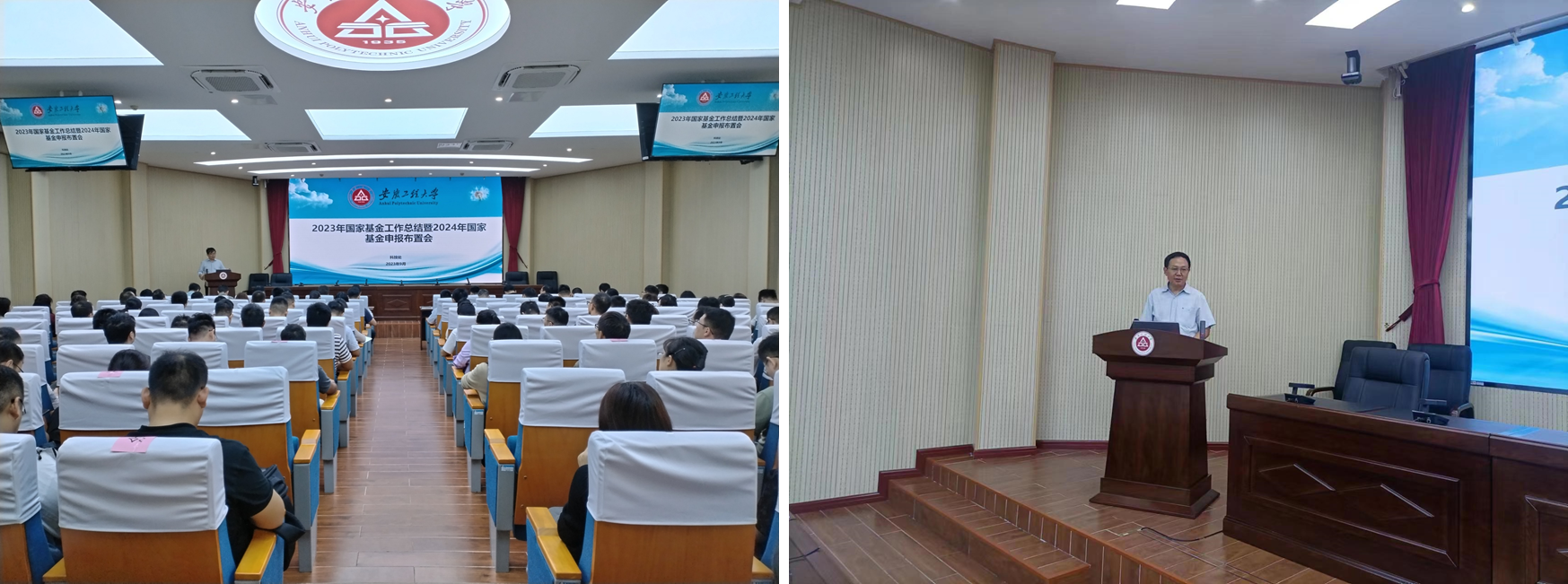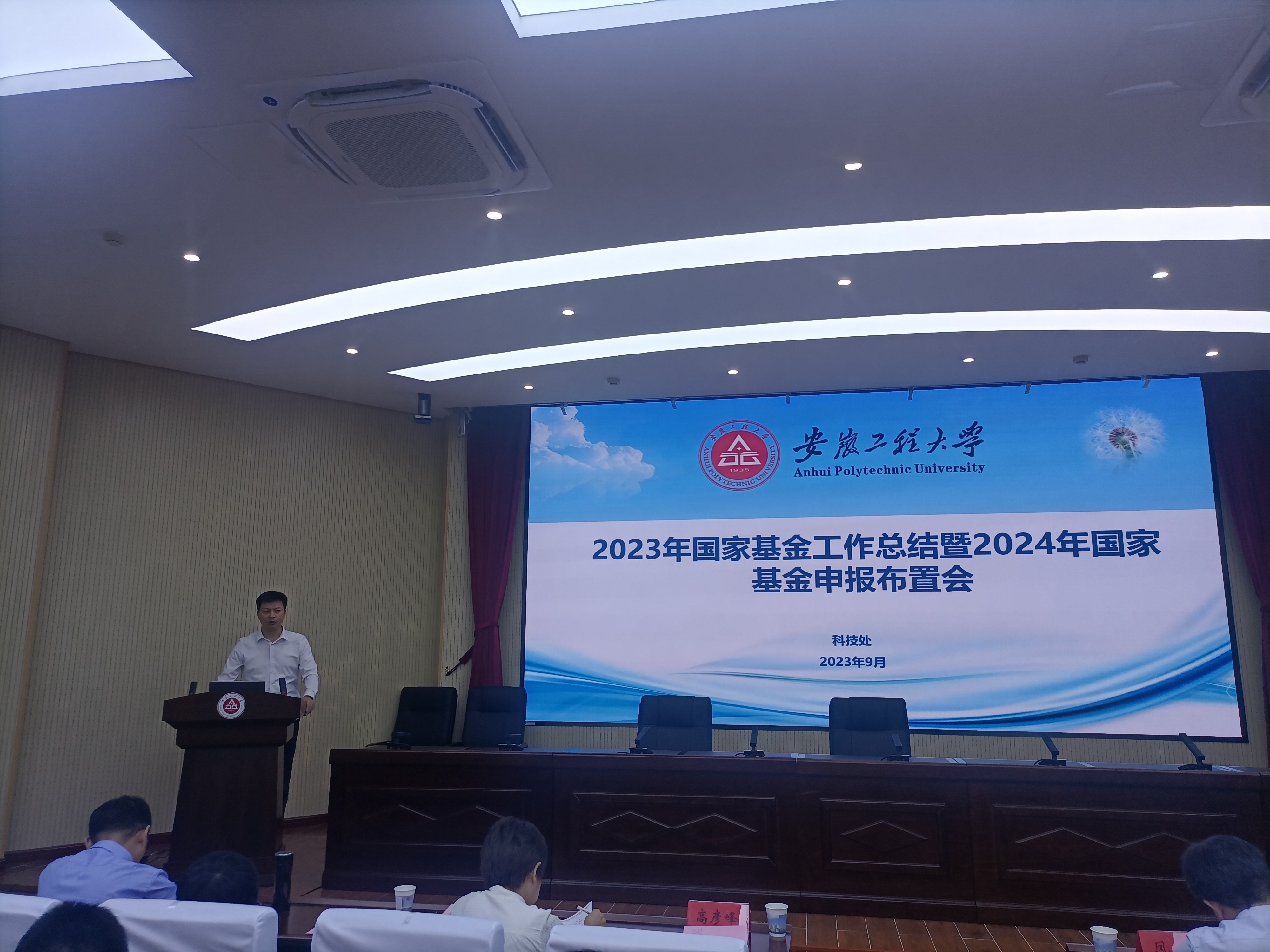 会议邀请了安徽农业大学赵冠艳做基金申报辅导报告,三个学院和教师代表发言,科技处负责人总结了2023年学校国家基金工作,同时布置了2024年基金申报相关工作安排。