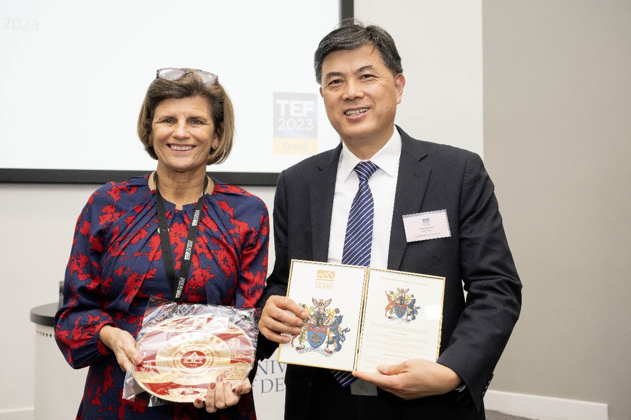 在省政府代表团的见证下,张志宏代表学校与德比大学校长Kathryn Mitchell共同签署了校际合作框架协议,内容涉及教师研修、科研合作与本硕学生联合培养等多个领域。