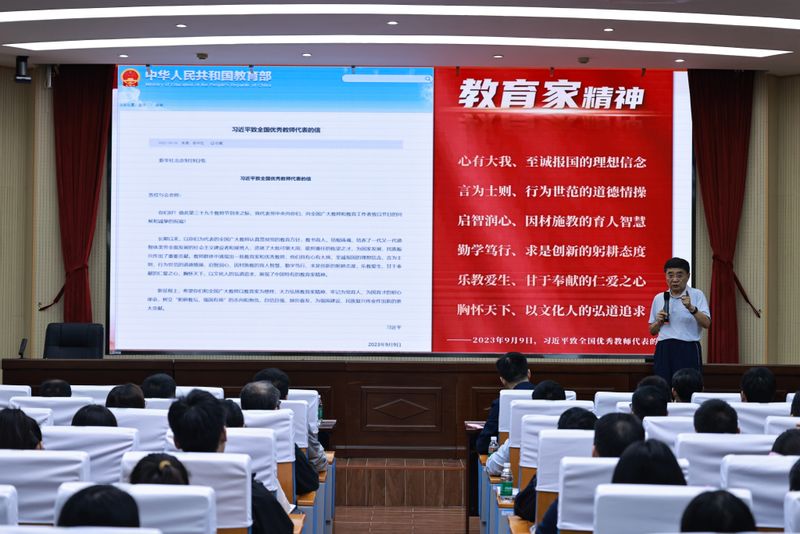 本网讯为贯彻落实习近平总书记关于教育的重要论述,以教育家精神为统领,落实好立德树人根本任务,提升导师教书育人能力,提高研究生人才培养质量,打造高水平研究生导师队伍和进一步加强师德师风建设,10月18日,学校举行“新增研究生导师岗前培训暨师德示范团队培训会”,全体2023年新增研究生导师和师德示范团队骨干成员及党委研究生工作部、研究生部、教工部负责人参会,校党委常委、副校长凤权出席并主持会议。