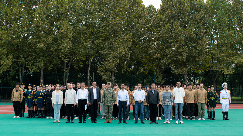 本网讯 为加强大学生国防教育,培养学生爱国主义和集体主义精神,10月25日,学校在第一田径场举行国防教育教导大队成立仪式。芜湖市鸠江区委常委、人武部政治委员程诚出席活动,校党委学工部、武装部、校团委、体育学院、体验产业学院等负责人,国防教育协会指导老师、国防教育协会会员、国旗护卫队第27届全体成员、国防教育教导大队全体人员参加活动。仪式由学工部部长黄炜主持。