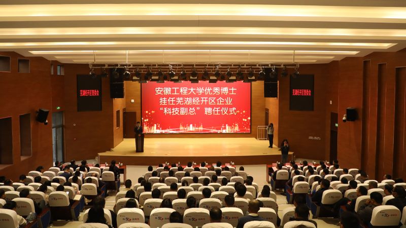 聘任仪式在芜湖经开区管委会一楼报告厅举行。我校首批10名优秀博士受聘成为马瑞利、宏景电子等10家经开区重点企业的“科技副总”。
