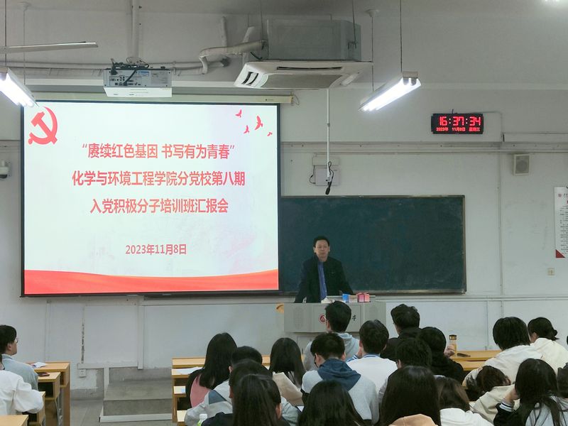 本网讯为进一步帮助学员坚定理想信念、端正入党动机,检验入党积极分子党课学习成果,11月8日,化学与环境工程学院分党校举行“赓续红色基因 书写有为青春”第八期入党积极分子培训班汇报会。学院党委书记章兵出席活动。活动由培训班班主任刘俞枚主持。