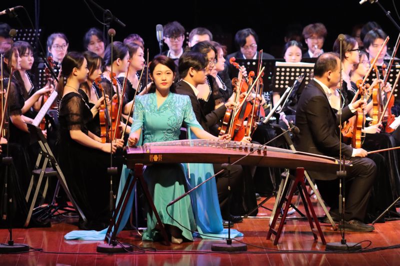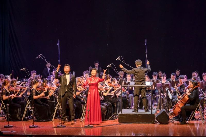 本场音乐会共演出了《庆典序曲》《云裳诉》《红色娘子军组曲》《春江花月夜》《我们的新时代》等十二个节目。管弦乐作品《庆典序曲》以热烈快速的跑句和唢呐、锣鼓的齐鸣勾画出一幅节日庆典的场面,乐曲的对比中段以如歌的慢板展现出一派盛世祥和的气氛。《红色娘子军组曲》改编自1964年上演的芭蕾舞剧《红色娘子军》,其中《娘子军操练舞》《万泉河水清又清》《军民联欢》三首曲目将现场观众带回了电影《红色娘子军》的画面,演员们用刚劲有力的歌声,让现场观众置身革命战争时期,感受那个时代人民的革命热情。古筝曲《云裳诉》是根据白居易的诗歌《长恨歌》创作,作曲家借唐代诗人李白的“云裳”一词来描绘同时代广为流传的杨贵妃和唐玄宗之间的爱情故事,将传统秦筝筝曲的古朴和现代筝曲的旋律和谐地融为一体。古曲《春江花月夜》由琵琶演奏,千变万化抒情的音乐旋律让在场观众感受“春江花月夜”的美妙意境。五位声乐教师带来的《我们的新时代》将音乐会推向高潮,音乐会在全场观众的掌声与喝彩声中圆满落下帷幕。