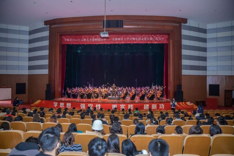 本网讯11月15日,由安徽省教育厅主办的高雅艺术进校园之安徽师范大学交响乐音乐会在我校师生活动中心精彩上演。全校900多名师生共同观看了演出。