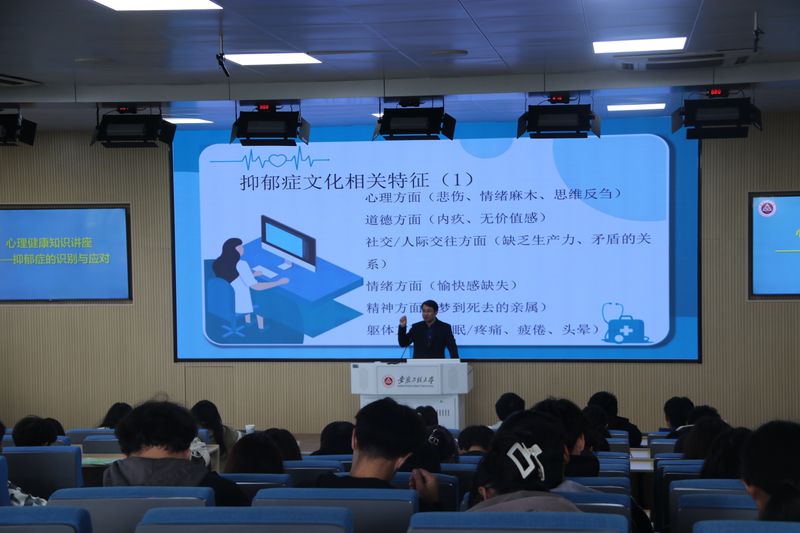 启动仪式后,夏仲作《抑郁症识别与应对》专题讲座,围绕“抑郁症文化相关特征”“抑郁症成因及表现”等方面,深度讲解了大学生群体如何有效识别抑郁情绪,并就抑郁症防治方面的常见问题及处理方法进行专业指导。