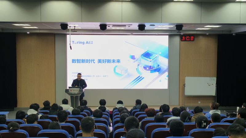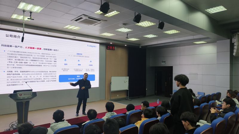 本网讯为推深做实“三全六专”育人实践,增进学生对人工智能前沿领域的认识,强化学生创新创业教育,11月28日,人工智能学院特邀请杰出校友,广州万维视景科技有限公司常务副总经理徐跃飞在5教117开展“数智新时代,美好新未来”主题的报告会,学院党委副书记李文江和200余名本科生参加。报告会由辅导员宋帅主持。