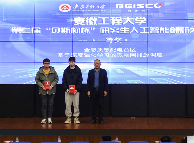 本次评审会邀请了芜湖市机器人学会会长陈卫民等5位评审专家。参赛项目通过PPT、视频、动画等多种方式进行汇报,并回答评审专家提问。经过现场评审专家独立打分,按照统分排序,“全息质感配电台区”和“基于深度强化学习的微电网能源调度”等10个项目获得本次大赛的一、二、三等奖。大赛进行了现场颁奖。