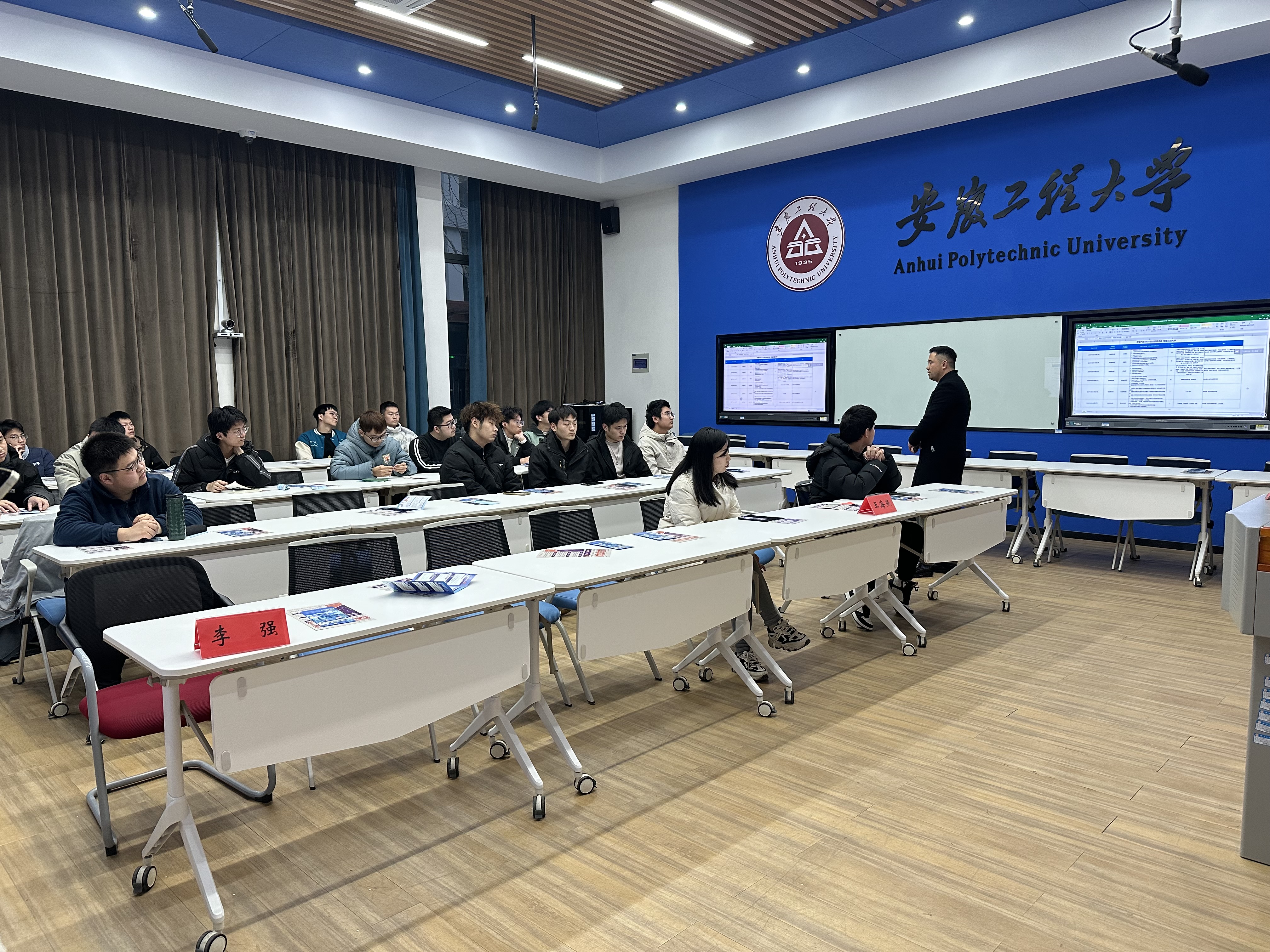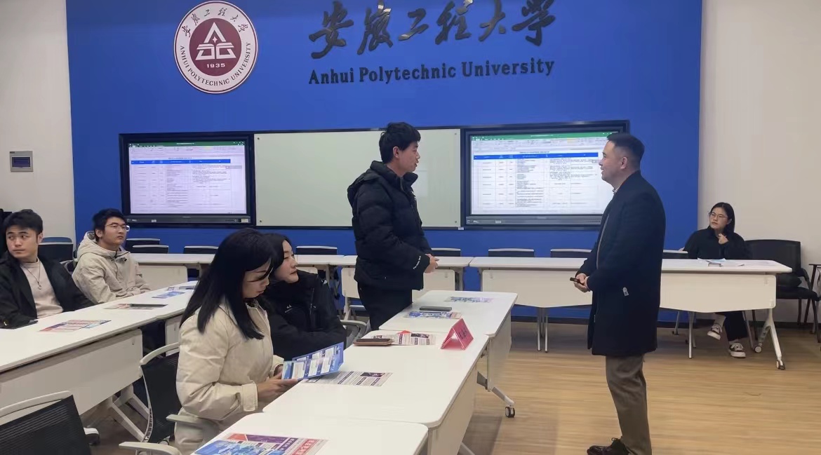 本网讯为贯彻落实“大学生促进就业认知行动”举措,推进我校毕业生高质量就业,12月13日,由芜湖经济技术开发区人力资源和社会保障局、校学生处、机械工程学院、“就在芜湖”服务站联合主办的“‘职’引未来 就在芜湖”大学生就业指导专题活动在国际工程师学院校区X101教室成功举办。芜湖经济技术开发区人社局人才中心科长李强、奇瑞汽车股份有限公司人力资源部高级招聘经理李祥受邀出席,机械工程学院团委副书记王海燕及学生代表参加活动。