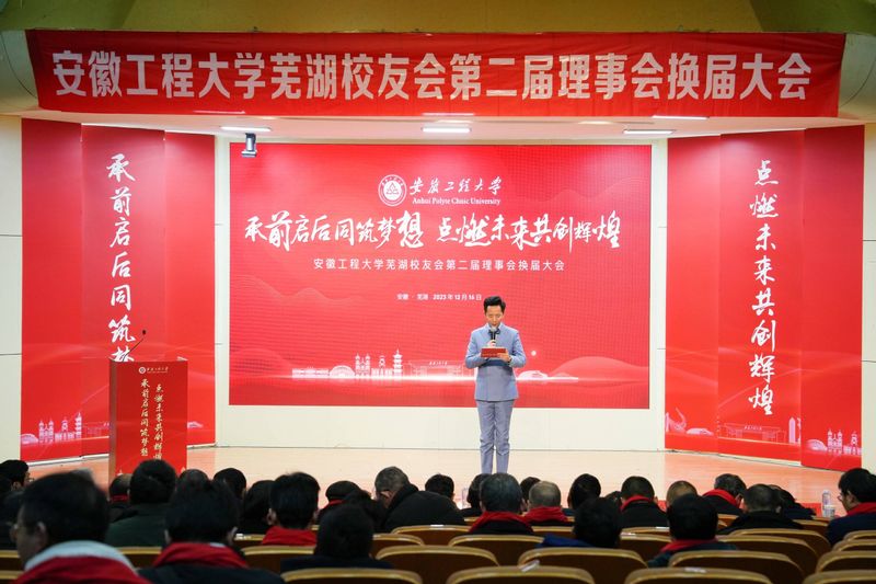 本网讯 12月16日,芜湖校友会在学术报告厅召开“承前启后同筑梦想 点燃未来共创辉煌”第二届理事会换届大会。校党委书记张志宏,芜湖市关工委主任魏道斌,校党委副书记、校友会会长苏国红,原副校长肖学东、郭兴众,原纪委书记汪奇燕,学校部分职能部门、各学院相关负责人,地方校友会及地方校友会筹备组负责人应邀参加。会议由艺术设计专业2004届校友,现芜湖传媒中心首席主持人戴君主持。