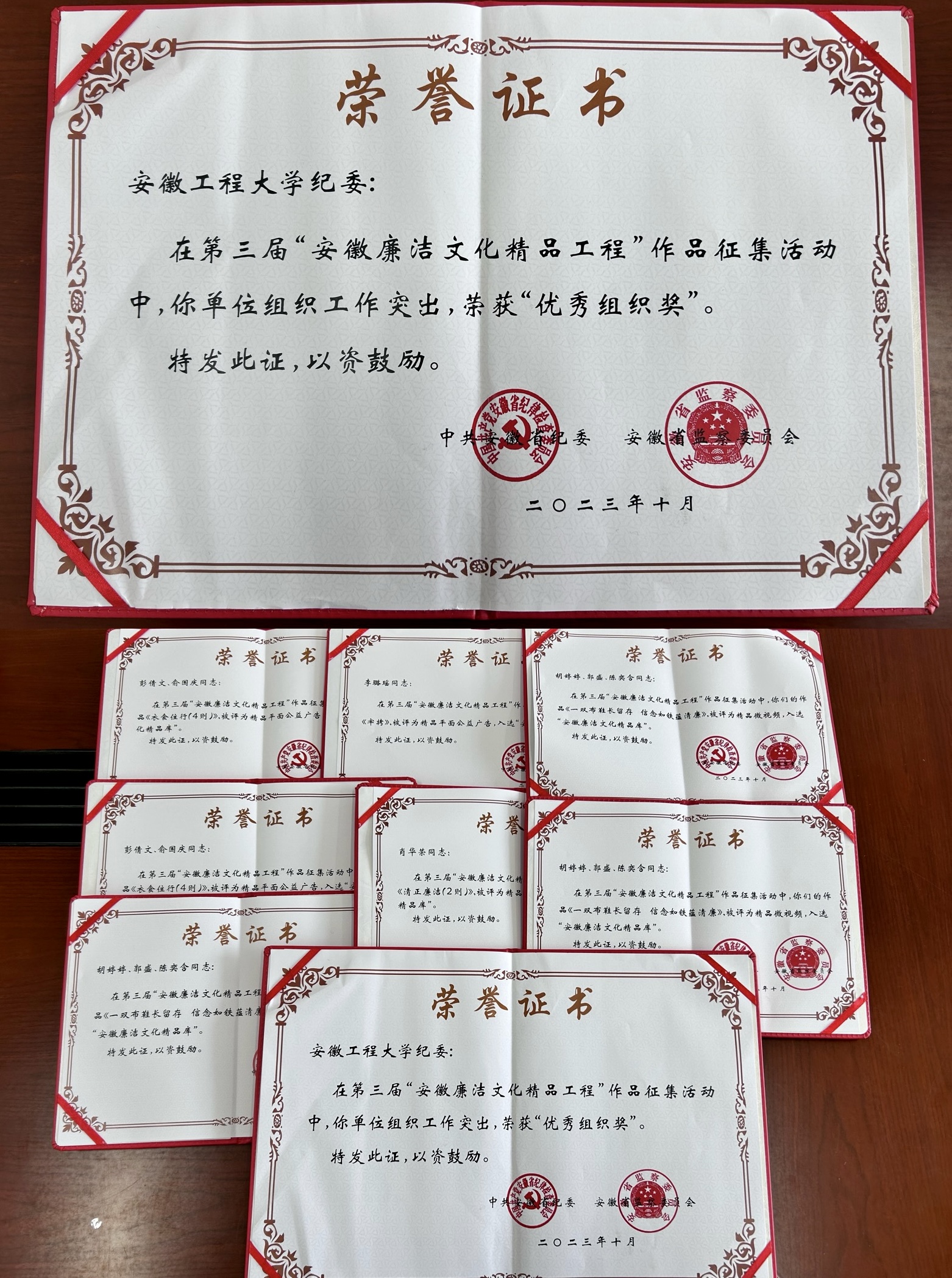 本网讯近日,第三届“安徽廉洁文化精品工程”作品展评选结果揭晓,学校纪委荣获“优秀组织奖”,由马克思主义学院胡婷婷、郭盛、陈奕含创作的微视频《一双布鞋长留存,信念如铁蕴清廉》,设计学院肖华荣创作的平面公益广告《清正廉洁(2则)》,设计学院彭倩文、俞国庆创作的平面公益广告《衣食住行(4则)》,设计学院李璐瑶创作的平面公益广告《牢拷》等4件作品成功入选。