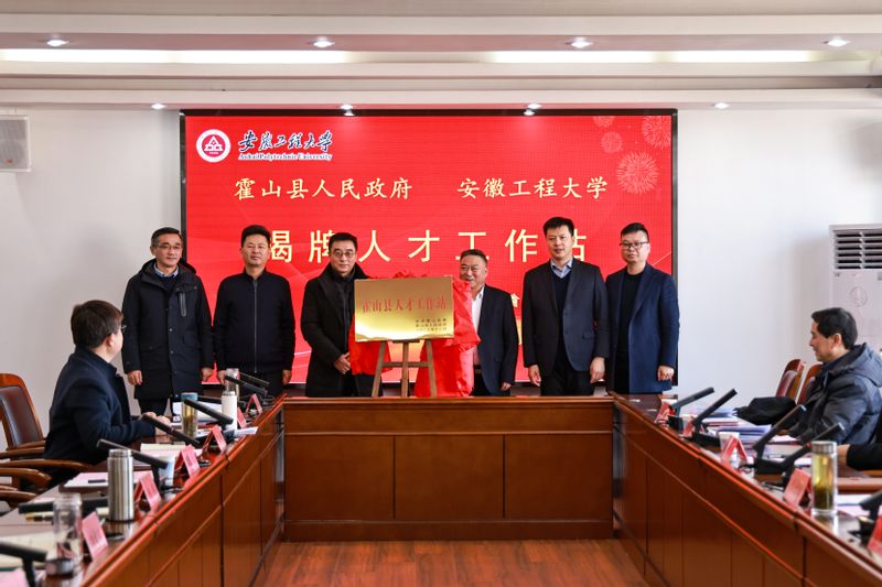 会上,王翔和科技处副处长王宗乾分别代表霍山县和学校签订科技合作协议。翁金成和学生处处长黄炜共同为“霍山县人才工作站”揭牌。