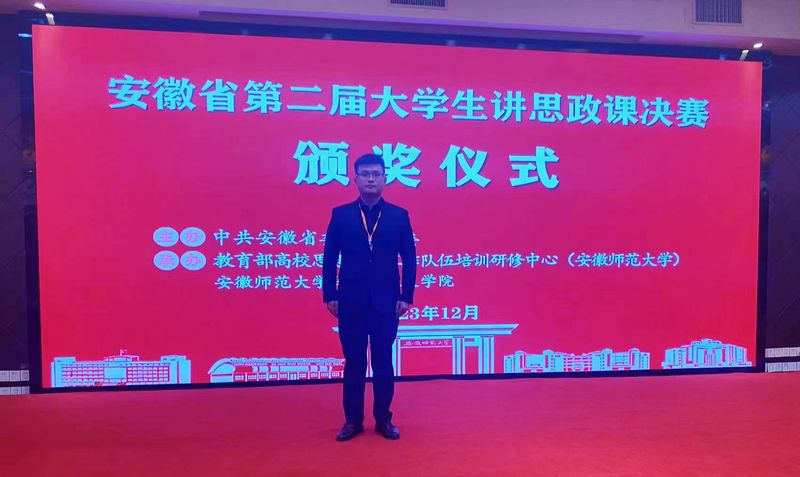 本网讯12月22日,安徽省第二届“大学生讲思政课”展示活动决赛在芜湖举行。经过激烈角逐,我校马克思主义学院研究生高俊团队荣获决赛特等奖,这是我校第二次获此殊荣,充分体现了我校思政课改革创新工作的良好成效。该团队指导教师苏国红教授、李海涛教授获得优秀指导教师称号。