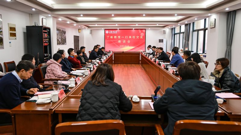 本网讯12月23日,东华大学科研院院长、国家级人才丁彬教授团队一行来校调研交流。校领导班子成员,质量管理95级校友、奇瑞新能源汽车股份有限公司董事长鲍思语,机制94级校友、开瑞控股新能源有限公司研究院院长徐鹏,相关职能部门负责人参加座谈会。